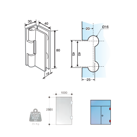 Per Porta de Vidre Temperat / trempat de 8/10 mm
