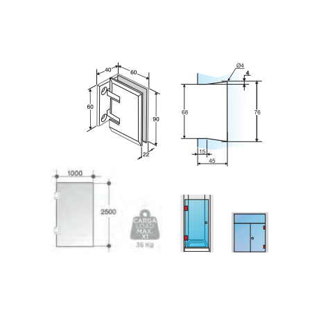 You must send us a drawing or image with the measurements of the notches that your hinge needs, and if they are to be at a distance between them, to info@vidresweb.com